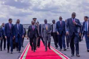 Madaxweynaha waxaa garoonka diyaaradaha JKIA EE Nairobi kusoo dhaweeyay madaxweyne kuxigeenka Kenya Rigathi Gachagua wasiirka gaashaandhigga kenya Adan Barre Ducaale iyo mas’uuliyiin kale.